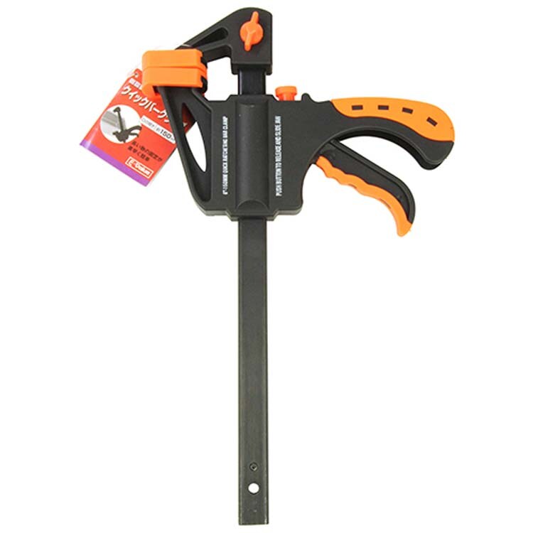 長い物の固定が素早く簡単にできるクランプです。締め付ける作業と広げる作業が1台で可能です。ボタンを押せばスライドするので固定作業がすばやく簡単に行えます。口の開き約150mm。