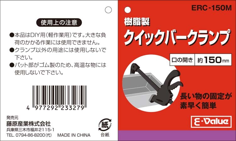 【E-Value 樹脂製クイックバークランプ ERC-150Mの商品詳細】