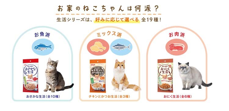 | 鶏肉、魚介類(カツオ、まぐろ)、オリゴ糖、増粘多糖類、調味料、ビタミンE |