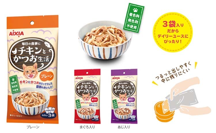 ●チキンとかつおのフレークをベースにしたゼリータイプ。