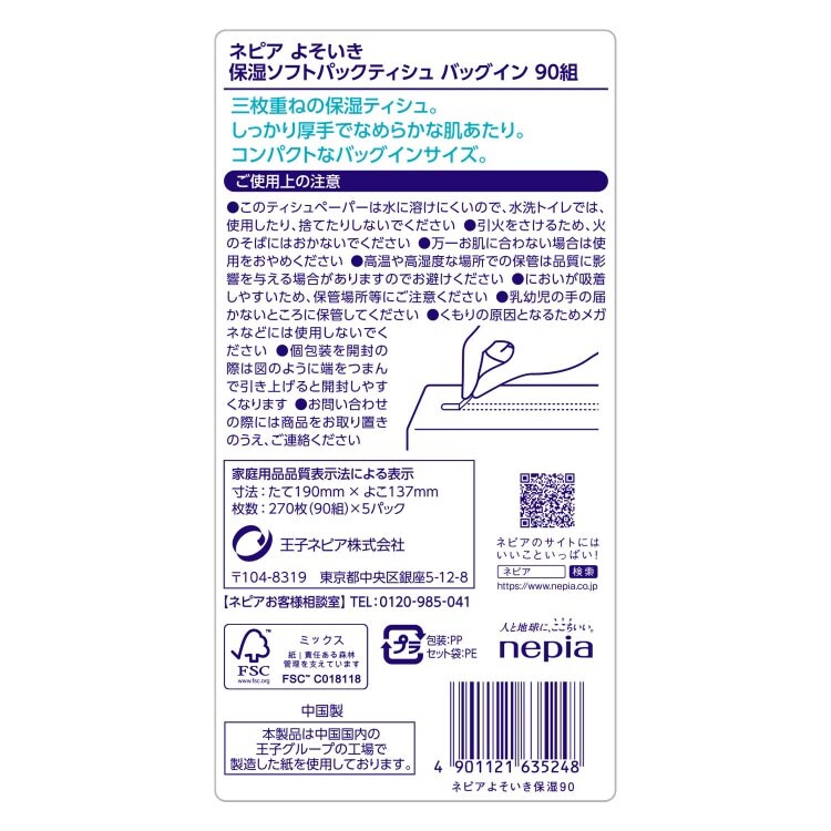 【ネピア よそいき 保湿ローションティッシュ ソフトパック バッグイン 3枚重ねの商品詳細】