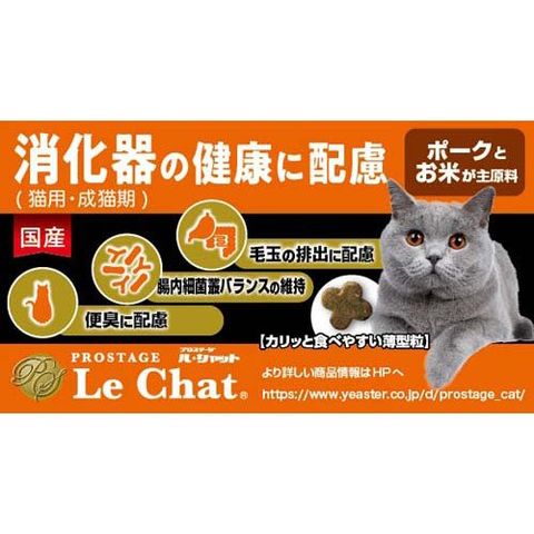| 米粉、ポークミール、小麦粉、チキンミール、牛脂、コーングルテンミール、ビートパルプ(プレバイオティクス源)、フィッシュミール、豚脂、酵母エキス、ビール酵母、アルファルファミール(食物繊維源)、セルロース(食物繊維源)、チーズパウダー、精製魚油(DHA・EPA源)、フィッシュソリュブル、オリゴ糖(プレバイオティクス源)、植物抽出発酵エキス、チキンエキス、殺菌処理乳酸菌(EC-12株)、殺菌処理ビフィズス菌、ミネラル類(塩化カリウム、炭酸カルシウム、食塩、硫酸亜鉛、硫酸銅、ヨウ素酸カルシウム)、アミノ酸類(DL-メチオニン、タウリン、L-トリプトファン)、ビタミン類(コリン、E、ナイアシン、C、B2、B1、A、パントテン酸、B6、葉酸、K、D3、B12、ビオチン)、酸味料(クエン酸)、香料(ローストガーリックオイル) |