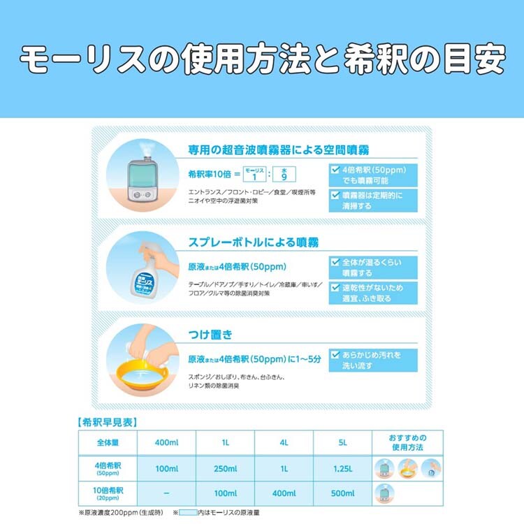 【除菌モーリス 弱酸性次亜塩素酸水 つけかえ用の商品詳細】