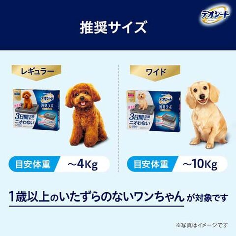 (ご使用の前にお読みください)本品の交換方法(!)本品の中身が偏ったり飛び散ることがありますので、マットを持ったまま振って広げたりしないでください。本品は、デオシート消臭ラボトイレシステム本体の中枠と底板の間にセットして使用します。「上枠・中枠」を一緒に外し、(専用取替マット)のドット柄の面を上にして「底板」の溝(みぞ)に合わせて置き、「上枠・中枠」を一緒にかぶせてセットしてください。・本品を取り替える際にはマットの四隅を持って、床が汚れないように汚れても構わないものの上で行ってください。・尿量が多い愛犬の場合、マットから尿がもれる場合がありますので、慣れるまでは1~2日に1回、本体中枠を開けてマットの吸収状態を確認してください。・マットを切ると中身が飛び散りますので、切らないでください。・本品の使用期間目安は、マットのサイズに適した10kg以下の愛犬1頭が使用する場合で約3日間です。・飼育している愛犬の数、体重や体調、尿量、季節によって使用できる期間は変化しますので、排泄のニオイやマットからの尿モレを防ぐために、使用期間は目安として早めに交換してください。