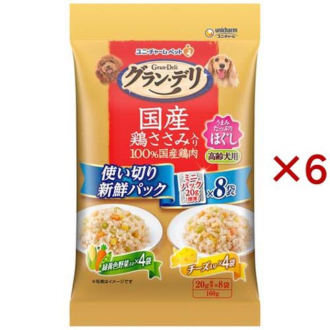グラン・デリ 国産鶏ささみパウチ 使い切り ほぐし 高齢犬用 野菜入り&チーズ入り (160g×6セット)