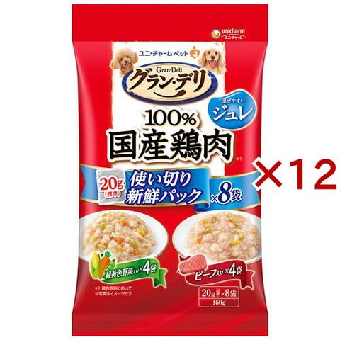 グラン・デリ 100%国産鶏肉 パウチ 使い切りパック ジュレ 成犬用 野菜&ビーフ (160g×12セット)