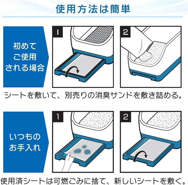 ●厚みのあるシートなので、1枚で約1週間交換せずに清潔に保つことができます。※標準的な成猫1匹で使用した場合の目安です。