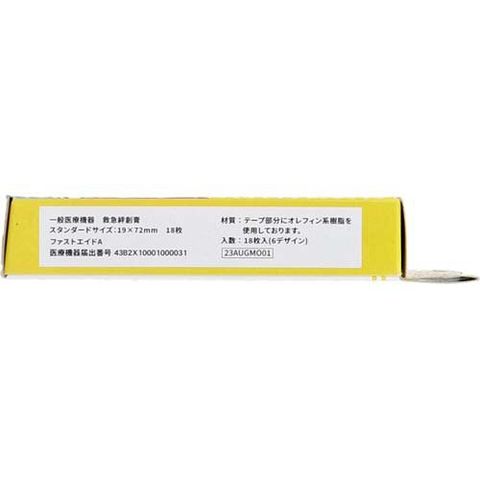 | 個装重量:約17g 内容量:18枚入 材質:テープ部分にオレフィン系樹脂を使用しております。 スタンダードサイズ:19×72mm |