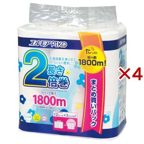 エルモアピコ 2倍巻 トイレットロール 18ロール シングル 100m 花の香り (18ロール×4セット)