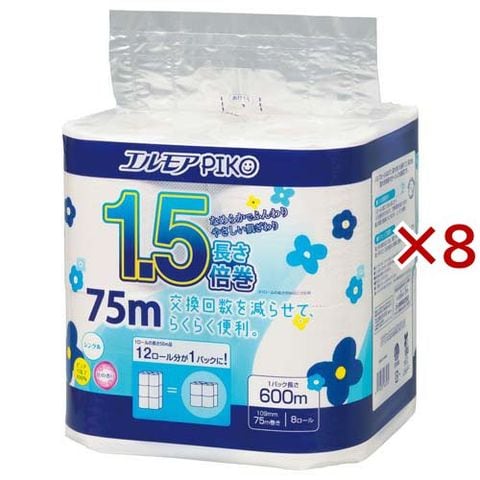 エルモアピコ 1.5倍巻 トイレットロール 8ロール シングル 75m 花の香り (8ロール×8セット)
