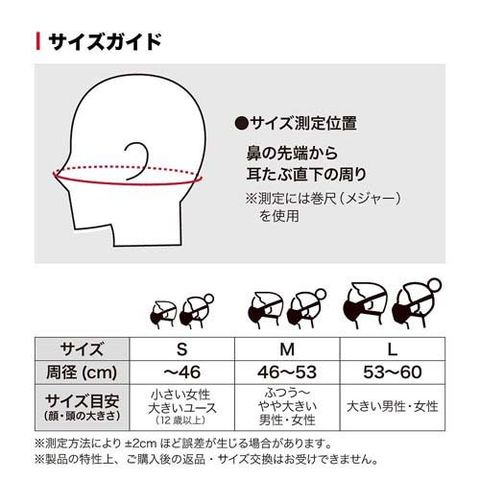 | ・素材:ポリエステル、ポリウレタン ・機能:吸汗速乾性、撥水・防汚機能、抗菌防臭、ストレッチ性、フィット性、UVカット、5層構造 ・仕様:防御機能(PROTECTION)/3層構造(2+1)、デュアルストラップ&ワイドサポート、撥水・抗菌防臭・UVカット99%以上、快適機能(COMFORT)/耳ストレス軽減 ・ソフトな肌あたり、ムレを軽減する通気性、吸汗速乾性・ストレッチ性・フィット性、アスリートの使いやすさ(ATHLETE-FRIENDRY)/着脱式フィルター、撥水・防汚・洗濯して繰り返し使える ・原産国:台湾 |