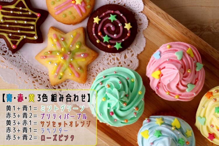 ●混ぜて自在に色を作ることができます。お菓子等の着色にご使用ください。