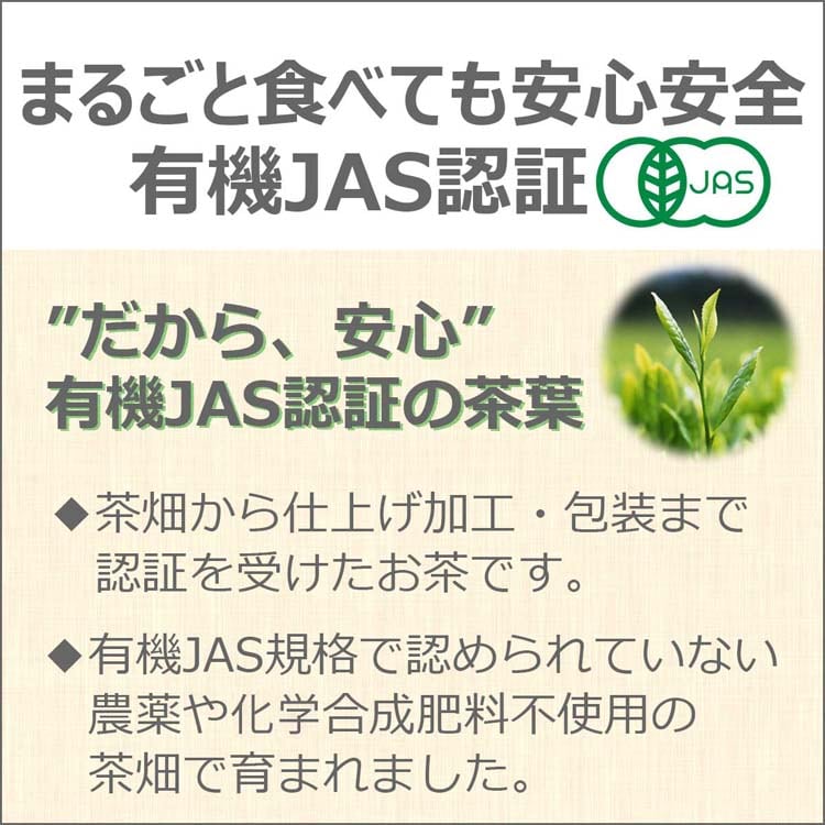 鹿児島県産、生産者限定した有機緑茶をまるごと粉砕。成分もまるごと摂れます。