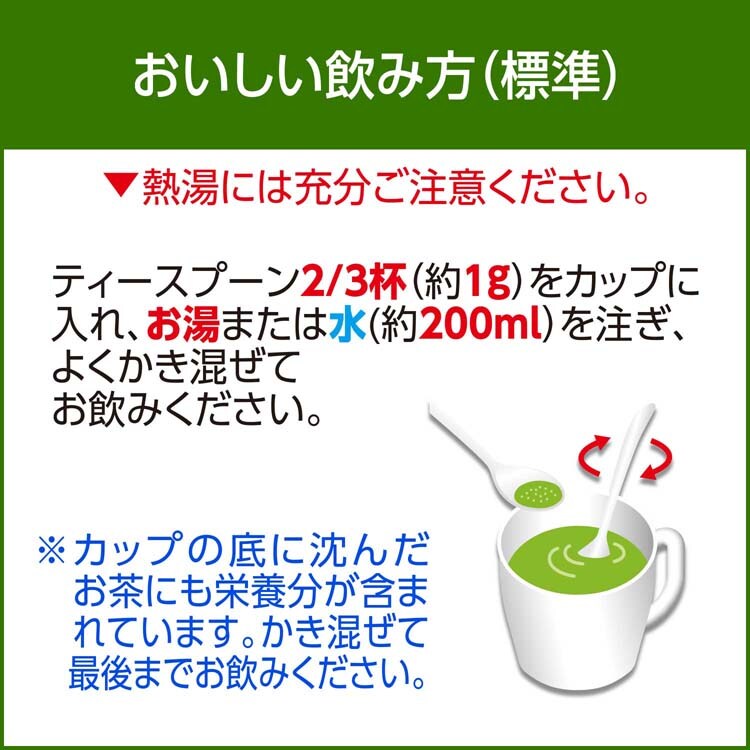 ※カップの底に沈んだお茶にも栄養分が含まれています。かき混ぜて最後までお飲みください。
