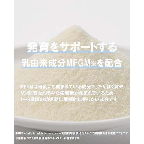 ●お子様に必要な栄養素を補うだけでなく、すこやかな発育をサポートするために乳由来成分であるMFGMを配合。