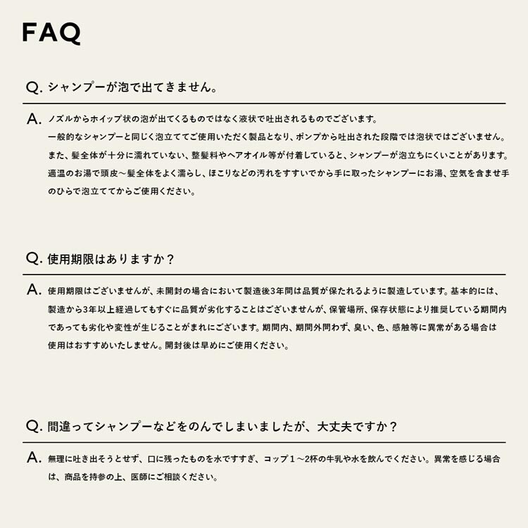 ・トリートメント成分が濃厚なため、粘度がやや高めとなっており量が少なくなると中身が片寄り出にくくなることがあります。