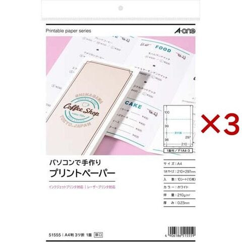 エーワン パソコンで手作りプリントペーパー A4判3ツ折り兼用 厚口 51555 (10シート×3セット)