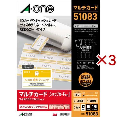 エーワン 名刺 カード ミシン目 キャッシュカードサイズ 白 51083 (10シート×3セット)