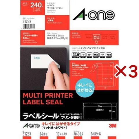 エーワン ラベルシール きれいにはがせる 24面 70×33.9mm 31287 (10シート×3セット)