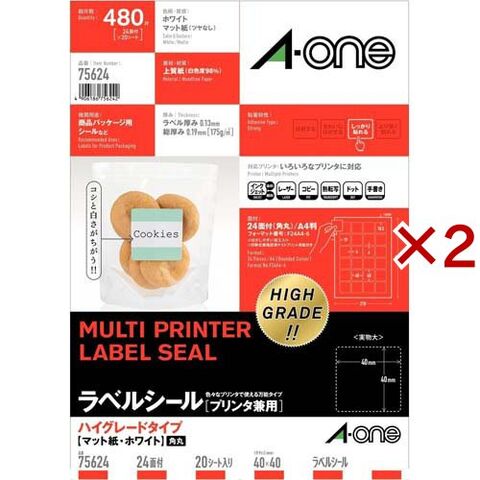 エーワン ラベルシール ハイグレード 24面 正方形 40×40mm 75624 (20シート×2セット)