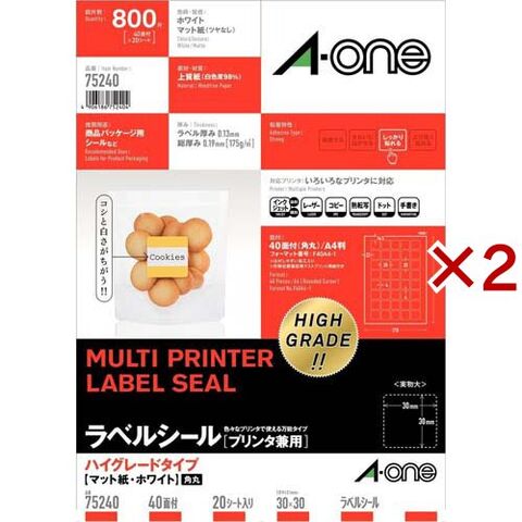 エーワン ラベルシール ハイグレード 40面 正方形 30×30mm 75240 (20シート×2セット)