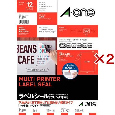 エーワン ラベルシール 下地 隠せる 透かしても読めない 修正 31659 (12シート×2セット)