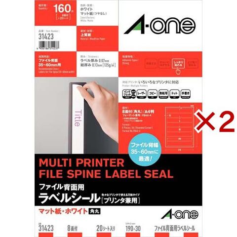 エーワン ファイル背面用ラベルシール(プリンタ兼用) A4 8面 四辺余白付 角丸 31423 (20シート×2セット)