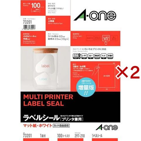 エーワン ラベルシール 1面 ノーカット はがしやすい加工 73201 (100シート×2セット)