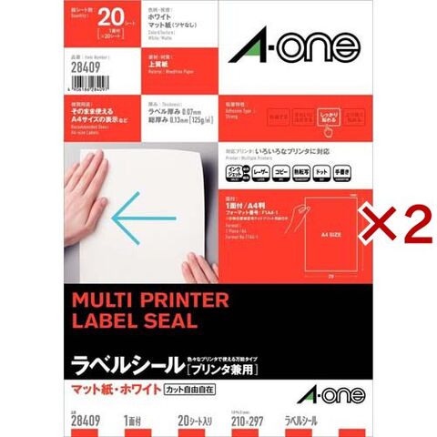 エーワン ラベルシール 1面 ノーカット 28409 (20シート×2セット)