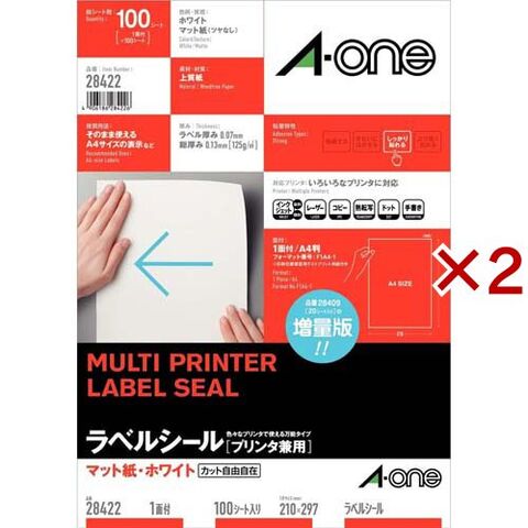 エーワン ラベルシール 1面 ノーカット 28422 (100シート×2セット)