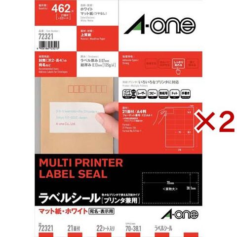 エーワン ラベルシール 宛名ラベル 21面 70×38.1mm 72321 (22シート×2セット)