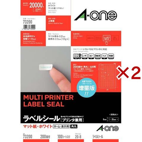 エーワン ラベルシール 200面 20×8mm 73200 (100シート×2セット)