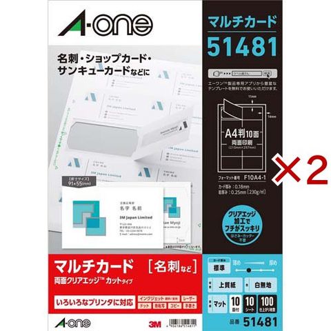 エーワン 名刺 カード フチスッキリ 白 51481 (10シート×2セット)