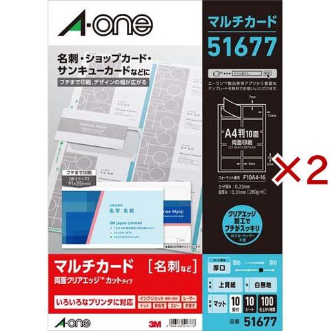 エーワン 名刺 カード フチスッキリ フチまで印刷 厚口 白 51677 (10シート×2セット)