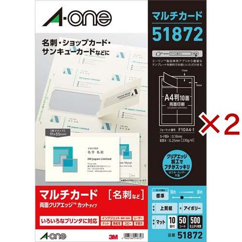 エーワン 名刺 カード フチスッキリ クリアエッジ アイボリー 51872 (50シート×2セット)