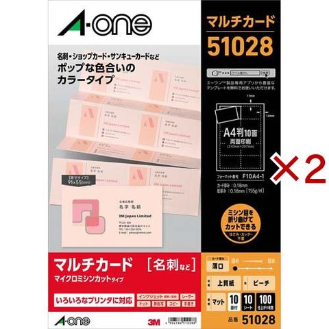 エーワン 名刺 カード ミシン目 ピーチ 51028 (10シート×2セット)