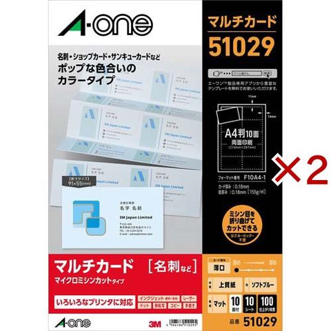 エーワン 名刺 カード ミシン目 ソフトブルー 51029 (10シート×2セット)