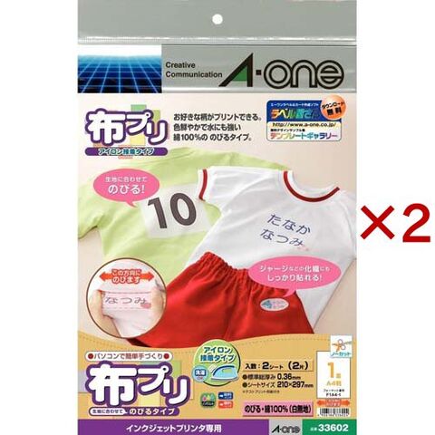 エーワン 布プリ 布にプリントできる アイロン 接着 のびる A4 1面 33602 (2シート×2セット)