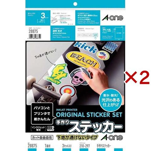 エーワン 手作り ステッカー 自作 インクジェット 下地が透けない A4 28875 (3シート×2セット)