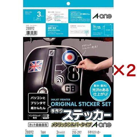 エーワン 手作り ステッカー 自作 インクジェット メタリックシルバー A4 28892 (3シート×2セット)