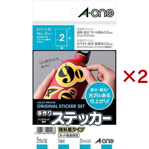 エーワン 手作り ステッカー 自作 インクジェット 強粘着 100×148mm 29418 (2シート×2セット)
