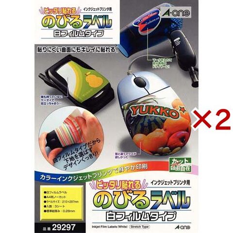 エーワン のびるラベル ステッカー インクジェット 染料 白 フィルム 1面 29297 (3シート×2セット)