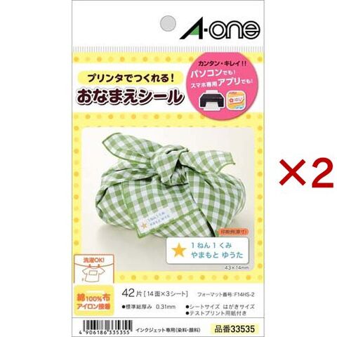 エーワン 布プリ 布にプリントできる アイロン 接着 14面 43×14mm 33535 (3シート×2セット)