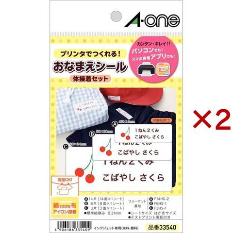 エーワン 布プリ 布にプリントできる アイロン 接着 体操着セット 3面 8面 14面 33540 (2セット)