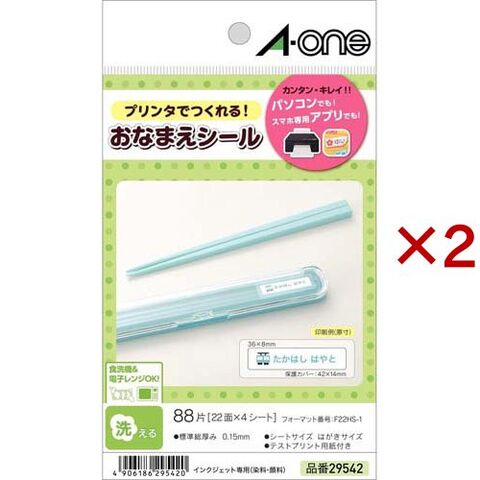 エーワン おなまえシール 洗える 食洗器 電子レンジ対応 インクジェット 22面 29542 (4シート×2セット)