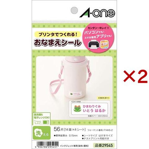 エーワン おなまえシール 洗える 食洗器 電子レンジ対応 インクジェット 14面 29545 (4シート×2セット)