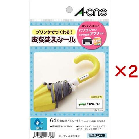 エーワン おなまえシール 水に強い インクジェット 染料16面 33×12mm 29335 (4シート×2セット)