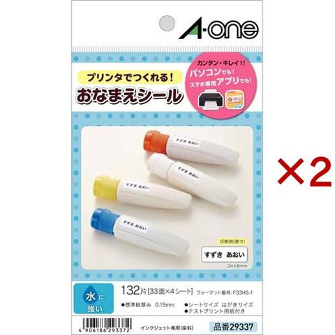 エーワン おなまえシール 水に強い インクジェット 染料33面 24×8mm 29337 (4シート×2セット)