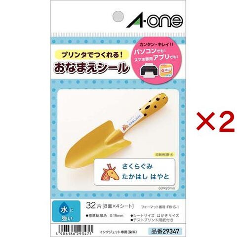 エーワン おなまえシール 水に強い インクジェット 染料8面 20×60mm 29347 (4シート×2セット)