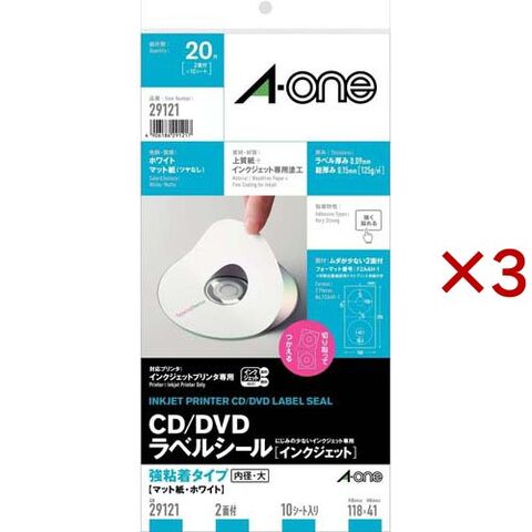 エーワン ラベルシール CD DVDラベル 2面 118×118mm 29121 (10シート×3セット)